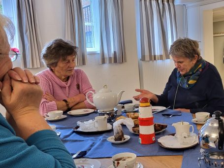 To´n 11 Ührtje stunn´wi vör´t Dör un hebben uns dat in Gretes wunnerbar Tuun bi Tee un Krinthstuut behagelk maakt.