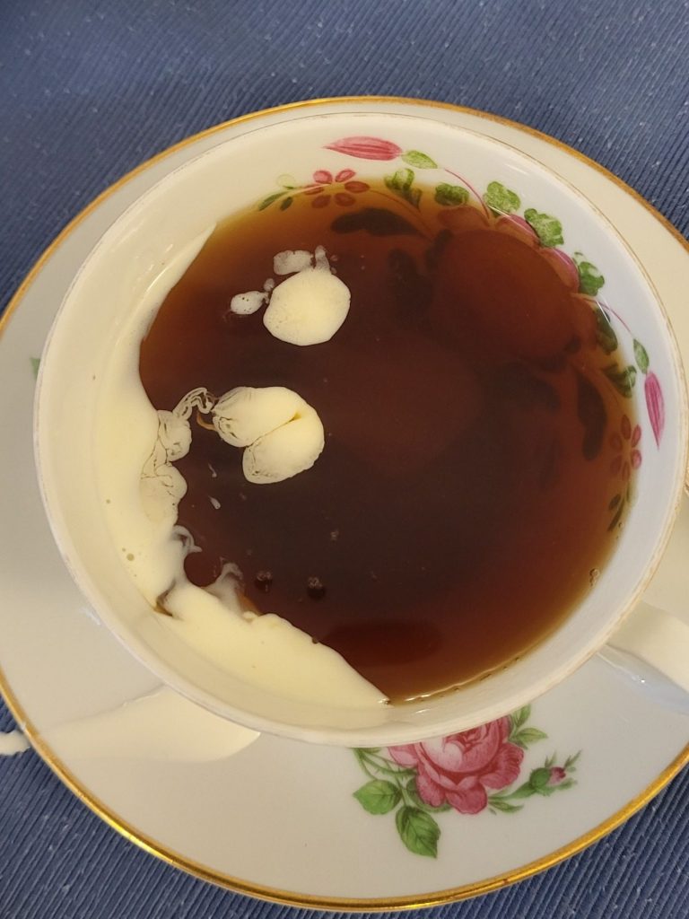 Man denn gaff dat ok noch verscheden Kokjes un Torten – klaar weer mit ´n lecker Koppke Tee – so as sük dat hört mit KLuntje un´n Wulkje boven up.