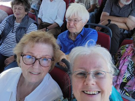 Deij paar, deij mit de Zug fahren wullden, harrn sükk ein Weke vörher doch för´t Auto entschieden – man gaud! Denn ein Dag vör de Reise is in de Hauptbahnhoff ein Lok vör ein Pieler fahren,… un denn gung d´r tweij Dagen nix mehr. Ofgeseihn van ein lüttje Stau harrn wi ein feine Fahrt dör de Sünne un hebben gaud na dat moije Hotel henfunnen. De Stratenbahn hollde stuuv vör de Döör un broch uns in de Binnenstadt, waar ein ander Bahntje up uns wachten dee. Stadtrundfahrt! Un tau unse Overraschung: De Ansegger prode de heile Tied oostfreisk Platt! Un deij Hupe hett neit tutet – nee, dat gung ofwesselnd i-a as de Esel, of se blaffde as ´n Hund, miaude of kraihde as de Hahne. Originell! Wi hebben vööl seihn van deij deilwiese olde Husen, deij in de Krieg nix ofkregen hebben.